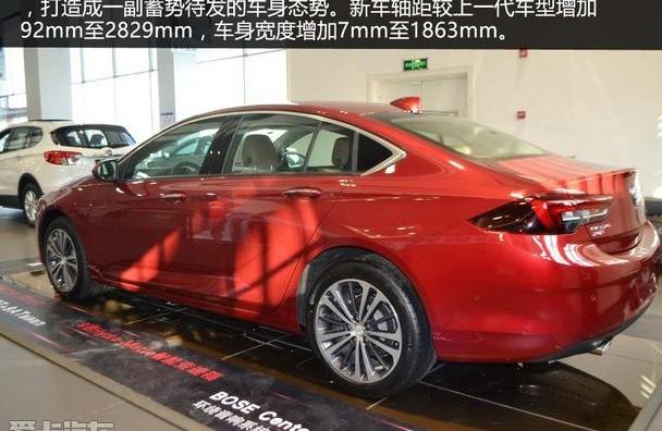 外观方面,新款别克君威采用了最新的家族设计元素,整体更加运动激进。前脸摆脱了老款车型的厚重感,镀铬条的加入也让前脸充满了运动感。此外,矩阵式大灯非常引人注目。侧面车身细长而低矮,更加凸显运动气息。上腰线从侧面一直延伸到尾灯,充满力量感。尾部与运动型前脸相呼应,短小的尾部增添了一丝运动气息。新款君威的长、宽、高均为4902*1863*1456mm,轴距为2829mm。与上一代车型相比,轴距增加了92毫米,达到2829毫米,车身宽度增加了7毫米,达到1863毫米。