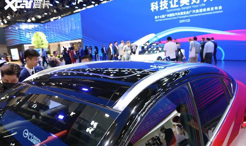 外观方面,新车采用了双色车身设计,车顶采用了溜背式设计,线条十分流畅。前脸采用了层次分明的设计和网状的前格栅。最值得注意的是新车的前LED大灯和尾灯的设计,扁平的设计和尖锐的造型增加了辨识度。特别是,LED日间行车灯看起来像汉字中的“广”。新车扁平的腰线贯穿车尾,车尾也采用了小鸭尾设计。