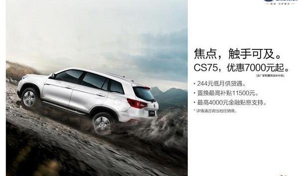 长安CS75以7000元起的优惠、244元的低月补贴、最高1.15万元的置换补贴、最高4000元的财政贴息支持震惊了聚辉。