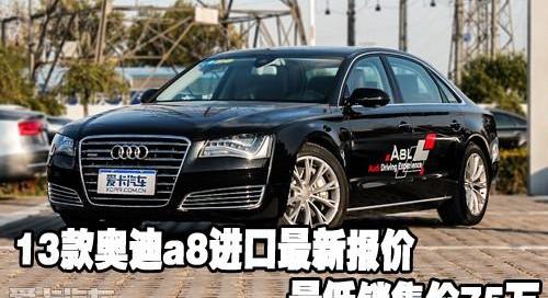 近日,爱卡汽车从天津中兴通奥汽车销售有限公司有限公司获悉,2013款奥迪A8车型拥有全套现有车辆,销售利润率显著。最低售价75万元,配置豪华,价格优惠。感兴趣的朋友不妨关注。欲了解更多信息,请拨打24小时购车热线15620939667: