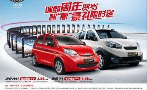 庆祝周年庆,感恩年末。北京万吉祥瑞奇店正在举办一项名为“瑞奇周年庆”的活动,智汇豪礼品有限送达”。活动期间,您只能来店试驾M1/X1,并收到瑞奇提供的精美礼品。活动期间如果您购买指定的瑞奇M1/X1型号,您可以收到价值4000元的WIFI 16G版苹果iPad平板电脑限时礼品。数量有限,先到先得。
