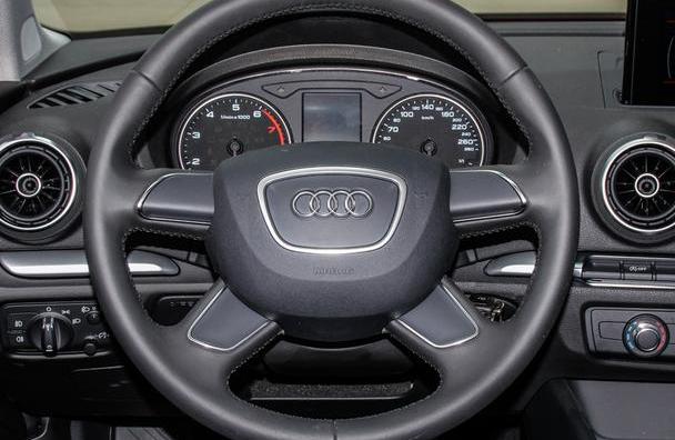 进入车内,相对容易看出奥迪A3激进型是一款入门级车型。四辐式方向盘与高端车型不同,多功能按钮的缺乏给驾驶带来了一些不便。总体而言,内饰设计仍然保持了奥迪简洁实用的风格。低配车型配备了5.8英寸彩色液晶显示屏、简化的奥迪多媒体交互系统,并且缺乏GPS导航和蓝牙电话功能。进取型虽然没有配备国人最喜欢的全景天窗,但后期可以选装;