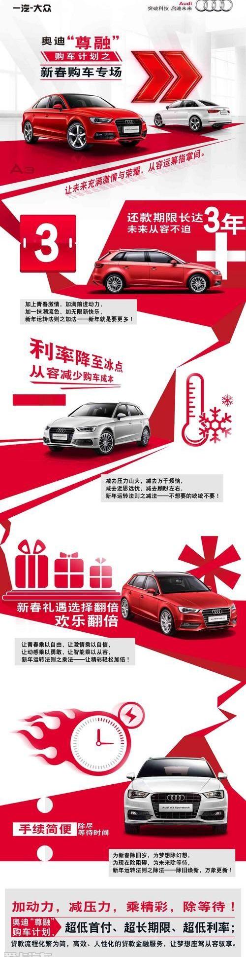 先加、减、乘、除,制定策略,然后享受A3!新款奥迪A3“尊荣轻松贷”首付30%,贷款期限2-3年,利率2.88-3.88%。梦想近在咫尺,未来可控。我们真诚地邀请您前来体验更多的财务礼遇,如50%的首付款、50%的尾付款和在当年10月付款。
