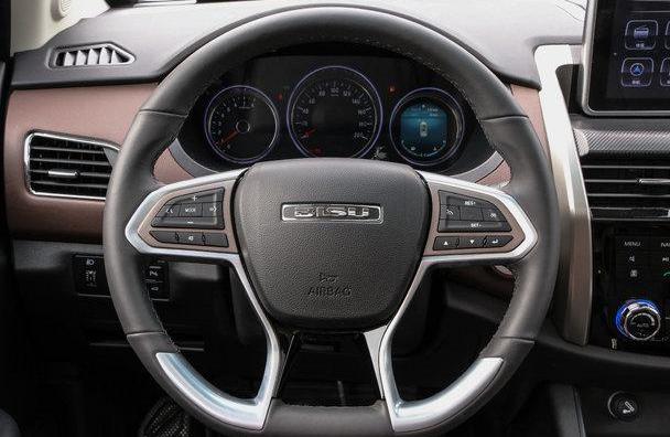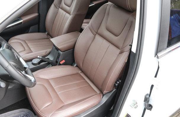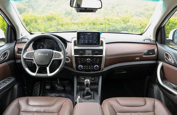 内饰方面,速派T5总体简洁优雅,采用环抱式座舱设计,层次感强。中控台上部和门板采用了大面积的皮革材料包裹,黑色和棕色的搭配非常有档次。方向盘采用四辐设计,平底增加了运动感。这两款高级车型还采用了皮革包裹,进一步增强了内饰感觉。三圈式仪表盘也更加讨人喜欢,周围环绕着一圈背光,提供了良好的视觉效果。