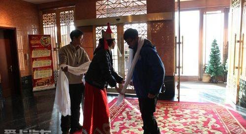 主办方向远道而来的客人赠送白色哈达,表达他们的真诚祝福
