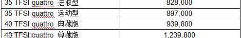 奥迪Q7于2015年上市,售价从82.8万元到123.98万元不等