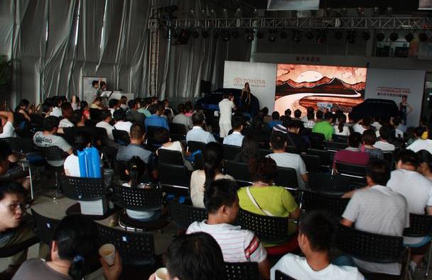 如果说6月28日在枫叶汽车剧院举行的有数百辆卡罗拉参加的华北地区上市仪式是一场盛大的活动,那么紧接着在北京速博宇丰田4S店举行的上市仪式则遵循了一条亲民的路线。店里全体员工的热情聚会使这次活动更像是一场聚会。