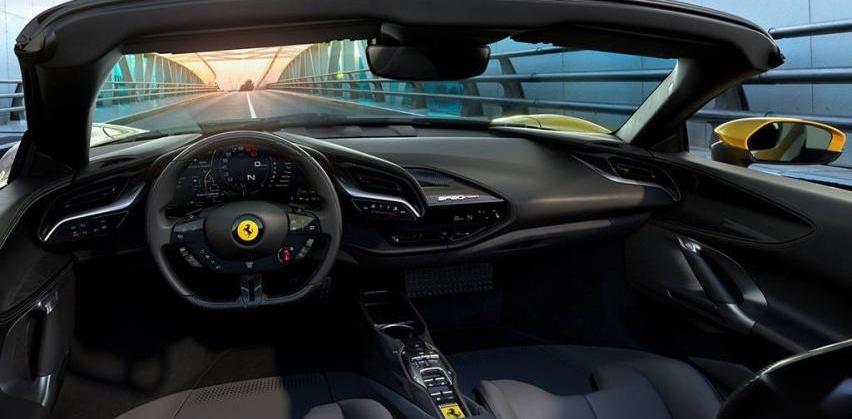 在动力方面,SF90 Spider由最大输出功率高达780马力的V8涡轮增压发动机和三台电动机驱动,最大综合输出功率可达1000马力。它搭载8速双离合变速箱和四驱系统,提供四种动力模式,百公里提速仅2.5秒,0-200公里提速仅7秒。
