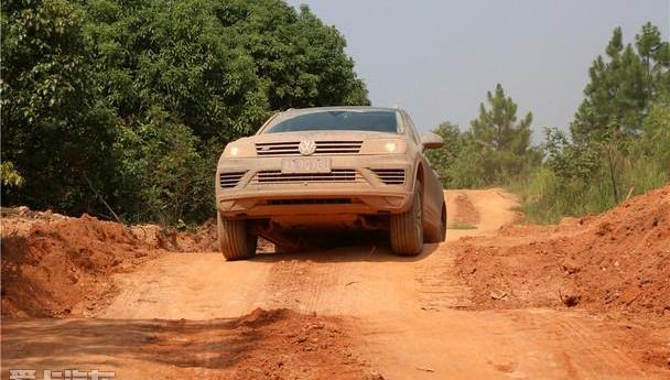 对于途锐来说,传统的未铺砌道路完全没有困难。底盘升起后,很容易通过障碍物。