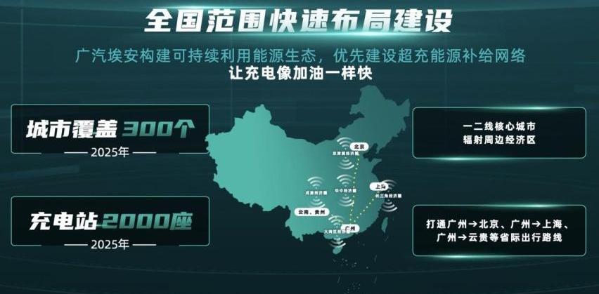 下一步,广汽埃安将在全国范围内快速部署建设品牌超充站,将新能源汽车的充电体验与燃油车的充电体验划上等号,为用户带来极致的充电体验。预计到2025年,将在全国300个城市建设2000个超充站,渗透到地级市,实现全覆盖。