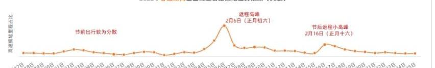 春节前,国道总体平稳,2月6日迎来返程高峰。受近期疫情影响,多地提倡就地过年,部分群众选择错峰出行。春节前,高速出行预计将相对分散在全国各地;春节期间,预计2月6日将是返程高峰,出行较为集中。拥堵高峰期为14:00至19:00;