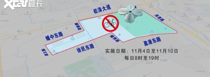 3、 11月4日至11月10日,每天6时至21时,松泽大道-盘龙路-英岗东路-珠光路-惠卓路-英港东路-华翔路围合区域,以及嘉民高架/英岗东路立交华翔路入口、建虹高架英岗东路出口,阳虹路立交桥华翔路入口、松泽高架华翔路/嘉民立交入口、松泽高架朱光路出口、朱光路地下通道北青路入口,除警车、消防车、救护车、工程救援车、公交车、出租车、,以及持有各类世博会入场证和机关核发的《控制区保留停车许可证》的车辆,其他机动车禁止通行。4、 11月4日至11月10日,每天8:00至19:00,松泽大道-盘镇路-盘中东路-盘闻路-徐民东路-盘秀路-盈港东路-莱港路-松泽大道围合区域内非机动车禁行。