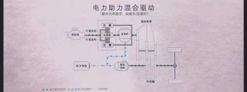 3、 当车辆需要快速加速和高速超车等高负载条件时,动力电池同时参与输出混合动力驱动模式。高压电池完全放电,驱动电机完全输出。此时,系统的总输出功率等于发动机输出功率的总和……