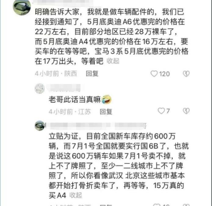 Netflix现在有600万辆汽车的库存,我认为这是夸大其词。有数据显示,截至2月底,全国乘用车库存约350万辆,其中310万辆为燃油车,其中很大一部分不符合最新的国六标准。这一库存大约是当前月销售额的三倍,这意味着全国范围内的制造商将立即停产,这足以销售三个月。三个月后,国家6B计划将开始实施。显然,停止生产是不可能的,唯一的出路就是减少……
