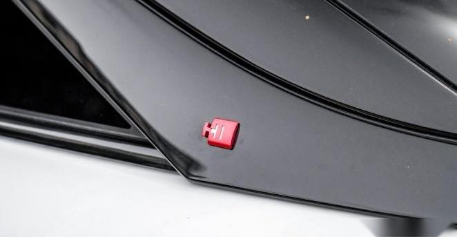 当然,整个车身侧面的设计也非常帅气,笔直的腰线拉伸了整个车身的细长线条,再加上大面积的溜背式车顶,更显时尚。同时,C柱的位置还增加了HI红色标志,增强了整个车身的辨识度。两侧机翼还增加了后视摄像头,进一步提高了其安全性能。