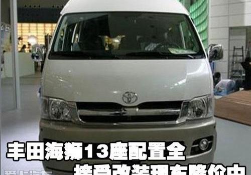 1900/1/1 0:00:00近日,爱卡汽车从天津长隆国际汽车贸易有限公司了解到,13款丰田海狮现车低廉售价店内接受改装。店内优惠活动启动,现车颜色齐全,配置丰富。感兴趣的朋友不妨关注一下。