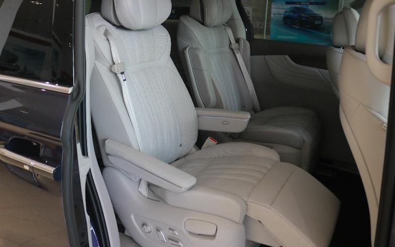 新车采用2+2+3座椅布局。据汽车制造商介绍,纯电动荣威iMAX8座椅表面由小牛皮制成。从触觉的角度来看,它确实让人觉得所用的材料相对先进。进入第二排,两个独立座椅的设计即使对于身高超过1.8米的人来说也能让人乘坐舒适。新车提供电动腿托。当乘客感到疲劳时,他们可以将座椅靠背放倒,甚至可以达到半躺着的姿势。对于商务旅行用户来说,这无疑更实用。