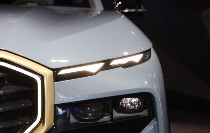 外观方面,宝马XM的前脸采用了巨大的双肾式进气格栅,仍然保留了宝马的传统。此次增加了环绕进气格栅的LED光源和亮黄色装饰条,为整车前脸带来了不少科技气息。新车采用了来自宝马新7系的分体式大灯设计,顶部有“尖牙”LED日间行车灯,下部远近光灯组与前包围融为一体。宝马XM的前包围也采用了全新的宝马设计语言,由多条锋利的水平线勾勒,使前脸更加立体。此外,结合小巧犀利的分体式大灯,整个车头充满侵略性,运动感十足。