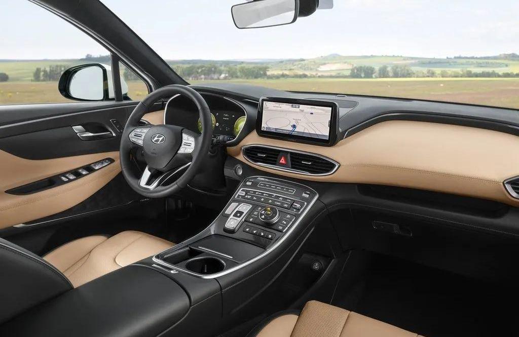 至于改变大的地方,首先在仪表盘上,新胜达采用了一个12.3英寸的液晶显示屏,而且和老款相比,它的位置会更低一点,观感略有提升。而中控部分,新胜达也用了全新的10.25英寸AVN中控触摸屏,科技感更强。
