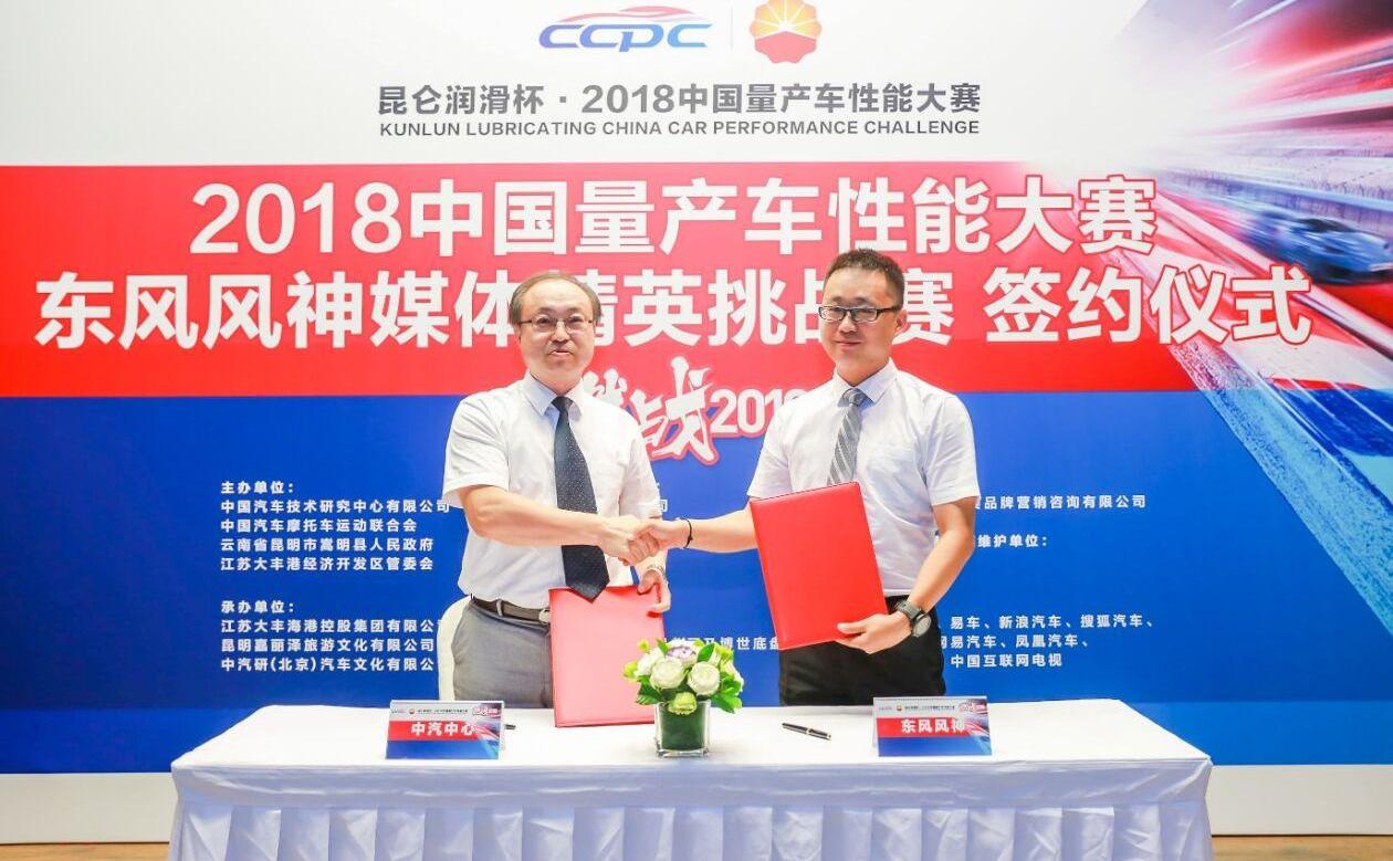 作为国内唯一以完全不改装的量产车型作为比赛车辆的专业汽车赛事,2018CCPC大赛必将打造成为最多汽车品牌参与的专业级秀场、最贴近消费者的购车参考平台,给国内广大汽车爱好者带来不一样的赛事精彩,全面引领中国汽车运动新时代,成为中国汽车赛事领域的风向标。值得一提的是,在昆仑润滑杯?2018中国量产车性能大赛新闻发布会正式开始之前,中汽中心和东风风神正式签署了合作协议,标志着昆仑润滑杯?2018中国量产车性能大赛东风风神媒体精英挑战赛(M组)正式启动。