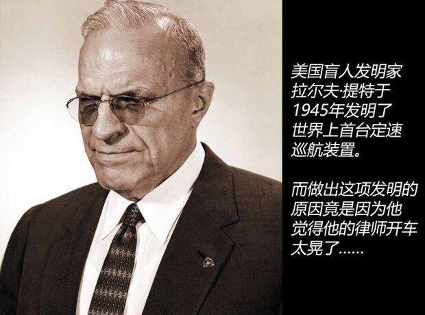 你可曾想过,汽车上的定速巡航功能竟是由一位盲人发明的?而且仅仅是源于一次不舒适的乘坐体验?美国盲人发明家拉尔夫·提特有一次搭乘他律师的轿车时,发现律师在与他交谈时会放慢车速,交谈完毕又会加速。盲人的体感相对常人要敏锐得多,这种忽快忽慢的感觉令拉尔夫很不舒服,于是他思考:为何不能制造一个装置让车辆保持匀速?