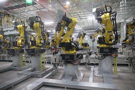 (沧州工厂车身车间,299台机器人挥舞着灵活的机械手臂搬运、焊接、码件,动作一气呵成)3年来,三地联合推动产业升级实现“1+1+1>3”的效果,努力打造立足区域、服务全国、辐射全球的优势产业集聚区,一批重大产业项目正在加快实施。其中2016年10月竣工投产的北京现代沧州工厂,是最近两年落户河北的最大体量产业协同项目,整车设计年产能30万辆,发动机设计年产能20万台。沧州工厂打造京津冀一体化样板工程北京现代沧州工厂的竣工投产,是北京市和河北省共同贯彻落实总书记视察北京重要讲话精神、推进京津冀协同发展战略所取得的重大战略成果,既能够帮助北京现代调整产能结构,又能带动沧州相关产业快速发展,尤其是河北省产业升级和行业发展,将对上下游配套产业形成巨大的吸附效应,并且带动汽车零部件制造业,发展成为沧州未来的主导产业,并直接带动整车以及零部件产业就业人数超过6000人,带动整车零部件物流、服务贸易、汽车金融以及相关产业产值超过1000亿元人民币。