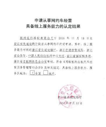 曹操专车月内有望拿下全国首张新能源网约车平台经营许可证。2月22日,吉利集团全资子公司-杭州优行科技有限公司旗下的主打新能源汽车共享出行平台的曹操专车,经浙江省交通运输厅、浙江省通讯管理局、浙江省厅、中国人民银行杭州中心支行、浙江省国家税务局、浙江省互联网信息办公室历时3个月的审核,获得由浙江省交通运输厅下发的《申请从事网约车经营具备线上服务能力的认定结果》,服务区域为全国。成为国内首个获得线上服务能力认定的新能源汽车共享出行平台。