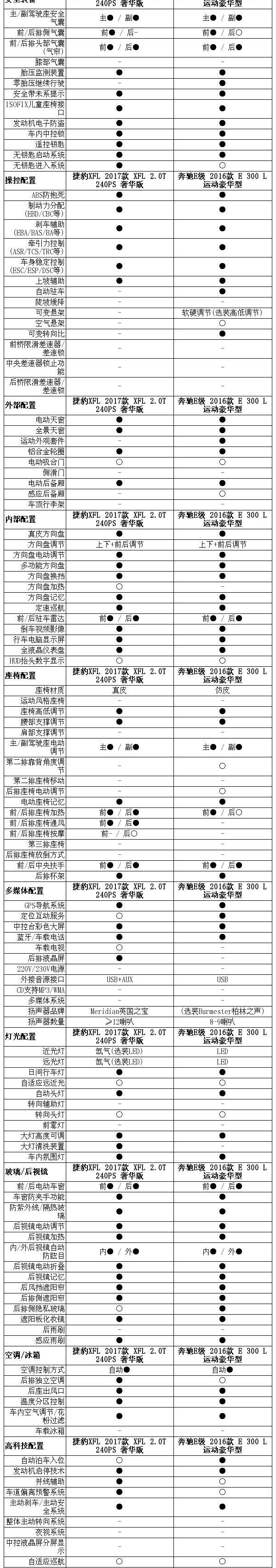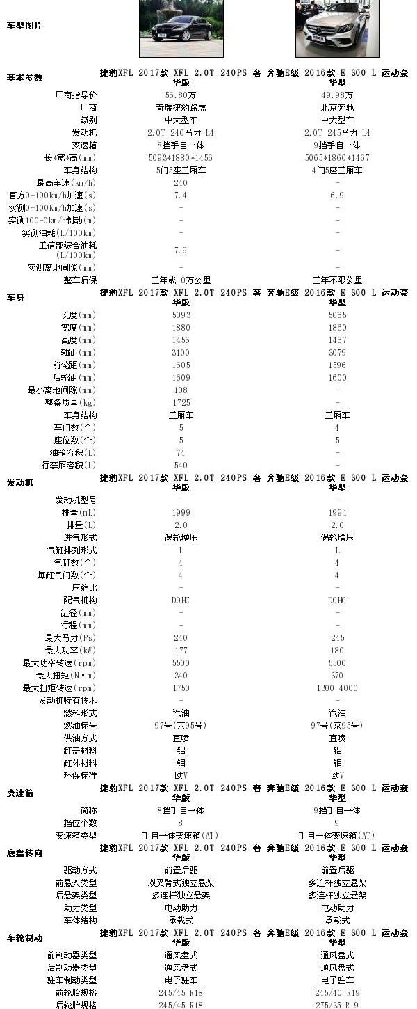 我们在相同条件下对两车的噪音进行了测试,并且还记录了对应的挡位和转速。E级再次凭借9AT的优势给人留下了更高级的舒适印象,它在时速110km/h时就能挂上第9挡,发动机转速维持得比较低。高速行驶时此,风噪和胎噪都抑制得很不错。XFL的行驶质感也很出色,来自发动机的噪音和胎噪都很好地被挡在了车外,表现和E级已经很接近了,如果高速时的风噪能处理再到位些那就更出色了。● 豪华在于细节两车的内饰从风格上来看都挺简约的,甚至一眼看去都不会有特别抢眼的豪华感。用力过猛的夸张设计反而不会太好,清爽干净的线条造型给人感觉充满亲和力,舒服又耐看。豪华的品位在于精致的细节,这就是深度。