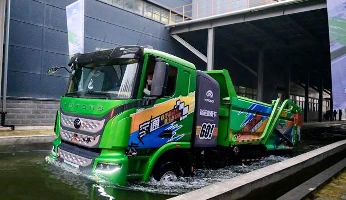 此前,宇通重卡产品在出厂前必须经过涉水测试。然而,在今天的极限挑战现场,宇通新能源重卡将展示业界首款未经改装的普通车,在1.3米深的水中行驶100米,行驶过程中波浪可达1.6米!