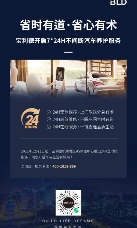 夜间保养、次日送达、24小时服务,打破了当前快节奏工作生活模式下4S店营业时间的传统限制。许多车主白天疲惫不堪,甚至日常的车辆保养也成了一件“奢侈”的事情。围绕用户痛点,宝利得打破了4S店传统的营业时间限制,专门推出夜间集中维修服务。车主可以提前预约,下班后只需点击一下,即可致电理工学院的专属上门接送车。晚上,宝立德服务专员将车带回店进行维修,并在一大早将车归还。在不影响车主日常用车的同时,他们还完成了汽车保养,极大地节省了车主的时间。创建一个24小时的“无眠车间”,全面提高夜间车辆维护的效率,这对车主来说至关重要,因为车辆维护的质量和效率都至关重要。为此,宝立德专注于打造“无眠车间”,实现车辆维修服务7X24小时不间断高速运行。同时,通过优化预约机制、细化维修流程、建设数字化系统、加强配件供应链、培养技术人员队伍,确保夜间工作顺利高效,进一步提高维修效率,缩短维修车辆交付周期。此外,夜间技术人员还可以作为夜间使用车辆的车主的安全“保镖”,快速响应并解决夜间任何时候发生的小型车辆故障,让用户更加放心、放心、放心。24小时一对一“云管家”,让用户足不出户就能享受到优质服务。保利德依托BLD me在线服务平台,不仅为汽车提供7X24小时VR展厅和新车预订、保养维修预约、5秒响应救援等专属服务,还提供7X24 24小时在线精英管家,为全球时尚精品店、高端旅游、,海外教育针对医疗保健等领域的个性化需求进行专业定制,让用户足不出户就能享受到高质量的产品和服务。如果您有任何问题,可以拨打理工7X24小时全国统一400客服热线。作为一家向世界提供优质产品和服务的零售企业,宝励得将在更多行业领域不断创新和突破,打造不同维度的24小时零售服务和体验场景。在满足用户日益增长的需求、建设美好生活的同时,宝励德还将为“不夜天堂,璀璨杭州”的夜间经济发展贡献力量。