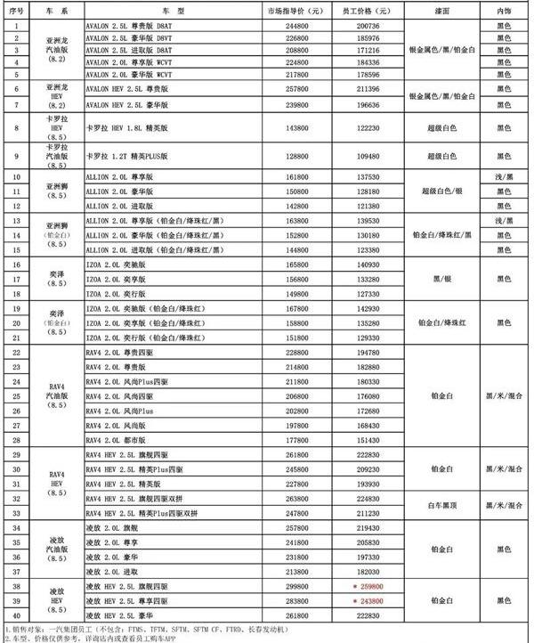 在一汽丰田品牌下,亚洲龙、卡罗拉、奕泽、荣放、亚洲狮、凌放等车型也参与员工价格优惠,上述车型的折扣在4万元左右。值得一提的是,在4S店提车时,几乎不可能提到裸车。加上保险、车牌服务费、金融服务费等,落地价格将处于较高水平。然而,当在制造商处取车时,可能会提到它是一辆裸车。然而,当员工在内部购买打折新车时,他们通常需要签署所谓的“捆绑协议”。员工不能在正常使用1-3年内出售购买的车辆,尽管每个制造商的内部规定各不相同。