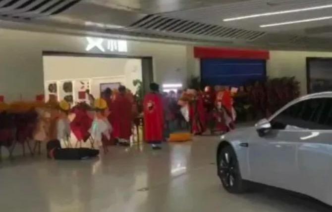 中华网财经2月28日消息,近日,有网友上传了一段视频,视频显示一群道士疑似在小鹏汽车一家线下门店门口做了什么。据说这是小鹏汽车新经销店的开业仪式。
