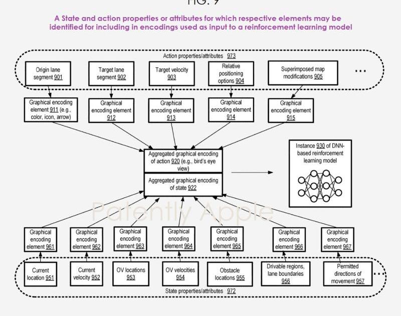 苹果专利图2和苹果专利图9是状态和动作属性或属性的例子,其中相应的因素只能在输入强化学习模型的编码中识别。