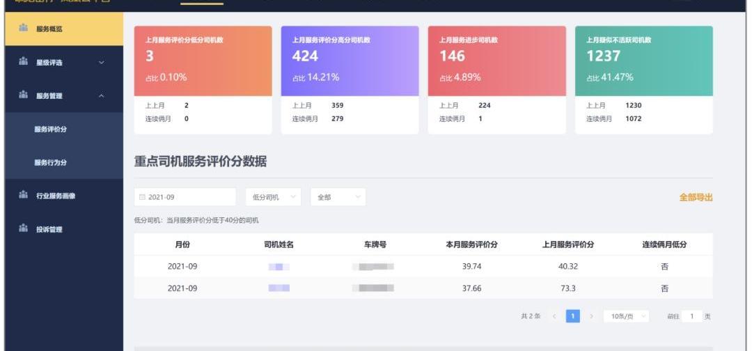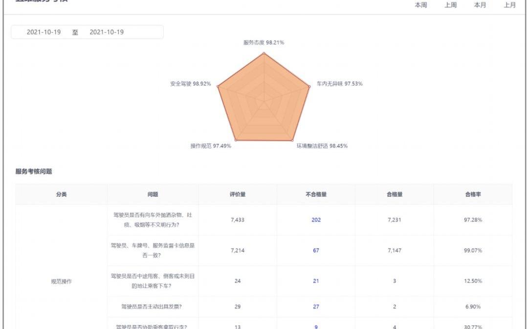 通过这份月度报告,我们不仅从整体角度评估了行业哪些方面的服务仍然不足,还从个别司机的角度确定了哪些司机的服务水平较差,哪些领域需要改进。这将使监管部门和企业能够提供有针对性的培训和教育,以有效提高驾驶员服务质量。