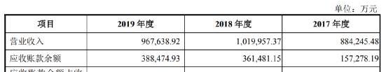 招股书显示,2017年至2019年,公司分别实现营业收入88.42亿元、101.99亿元和96.76亿元;