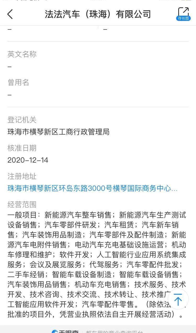 2020年12月14日,法发汽车有限公司注册成立,注册资本2.5亿美元。目前,实收资本尚未显示,基本可以判断为尚未到位——至于未来,很难说。通过查看这家公司的商业信息,杠杆游戏发现了许多有趣的方面。例如,近年来,贾会计师在中国注册的汽车相关公司数量令人震惊。今天,我将与同事们简要分享这些公开的商业信息,这也将有助于我们的思考。他真的有可能回来吗?他的车还有机会在中国制造吗?1.FF香港在中国注册了两家公司。法拉第在美国的未来处境并不是今天杠杆游戏的焦点。一些优秀的媒体和媒体人员已经访问了现场,但无论如何都不乐观。要想扭转局面,或者说要听到这个故事,这可能取决于中国。根据目前的公开信息,法拉第未来在中国的业务将主要依赖FF香港控股有限公司在中国成立的公司。根据天眼查的信息,目前已有两家公司相继成立。第一家是2017年3月注册成立的法发汽车有限公司有限公司,另一家是2020年12月成立的法法汽车有限公司有限公司。