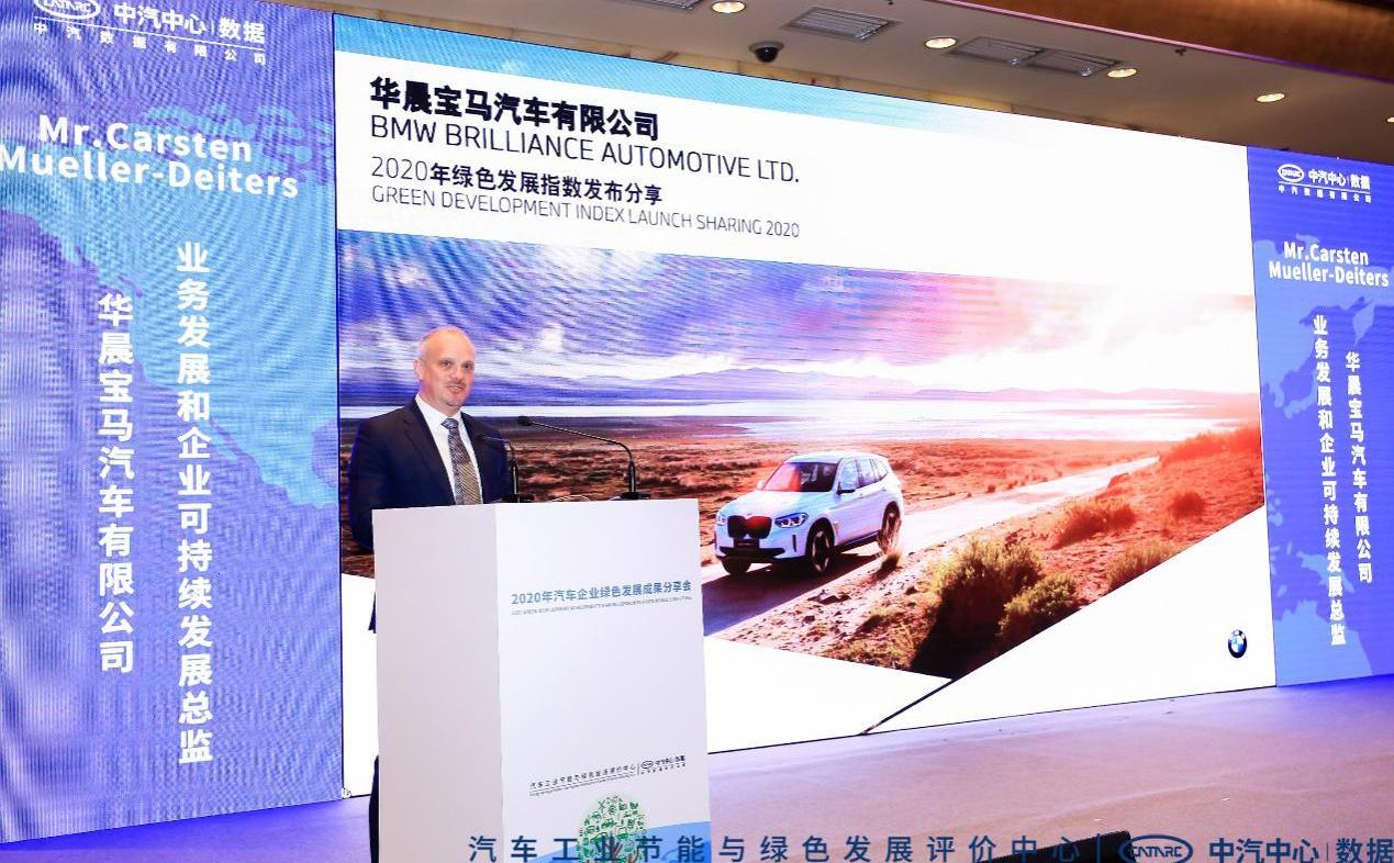 华晨宝马业务发展和企业可持续发展总监Carsten Mueller Dieters先生上台领奖