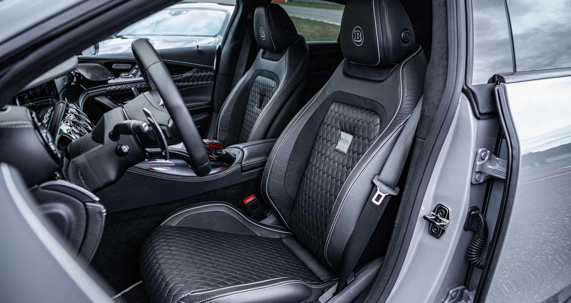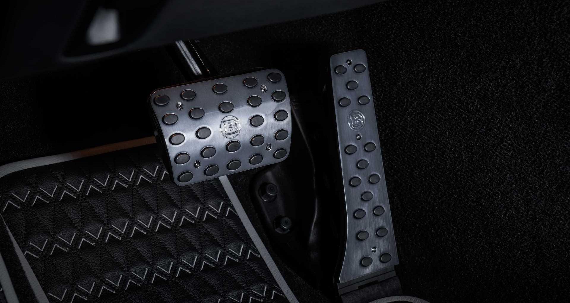 内饰方面,采用了黑色皮革和Alcantara材质。与普通车型相比,增加了带有Brabus标志的踏板。Brabus标志显示在方向盘和座椅上。中控台上的专用铭牌数量有限。