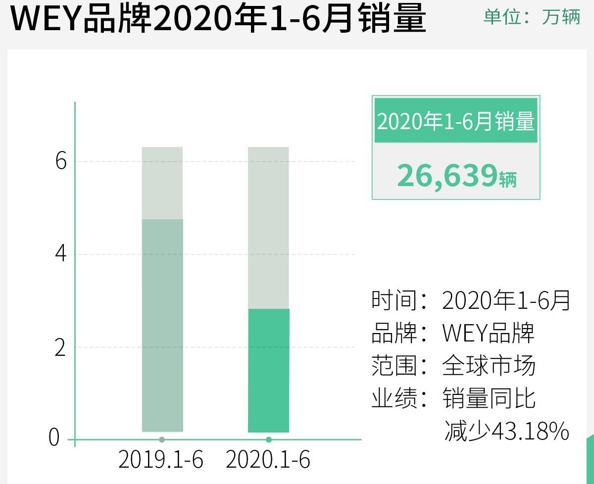 2020年1-6月,长城汽车累计销售新车395097辆。由于1月以来疫情在中国逐渐爆发,汽车行业的整体销量有所下降,但长城汽车的整体销量自3月以来逐渐恢复。哈弗品牌仍然占据着半边天。上半年,哈弗品牌累计销量达到262216辆,同比下降25.69%。但6月销量达到46998辆,同比增长3.8%。至此,哈弗在全球累计销量达到600万辆,成为中国首个进入600万俱乐部的专业SUV品牌。