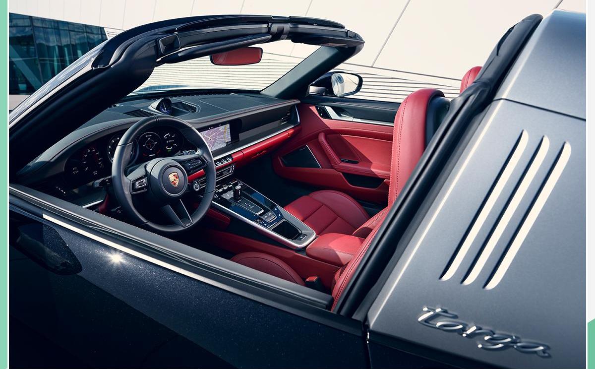 全新911 Targa可配备930个与第一代保时捷911 Turbo风格相同的皮革部件。这款双色调内饰由保时捷尊享Manufaktur和Weissach研发中心的设计专家共同设计。这些部件包括前/后绗缝座椅中央衬板、绗缝车门衬板和其他来自Porsche Exclusive Manufaktur的丰富皮革装饰。双色调内饰提供波尔多红/哑光灰、黑色/石板灰等颜色组合……