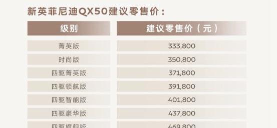 昨晚,2020款英菲尼迪QX50正式上市,共推出前轮驱动和四轮驱动等7款车型,售价3338-46.98万元。在几乎不变的设计下,新款车型对配置进行了多次调整,增强了市场竞争力。