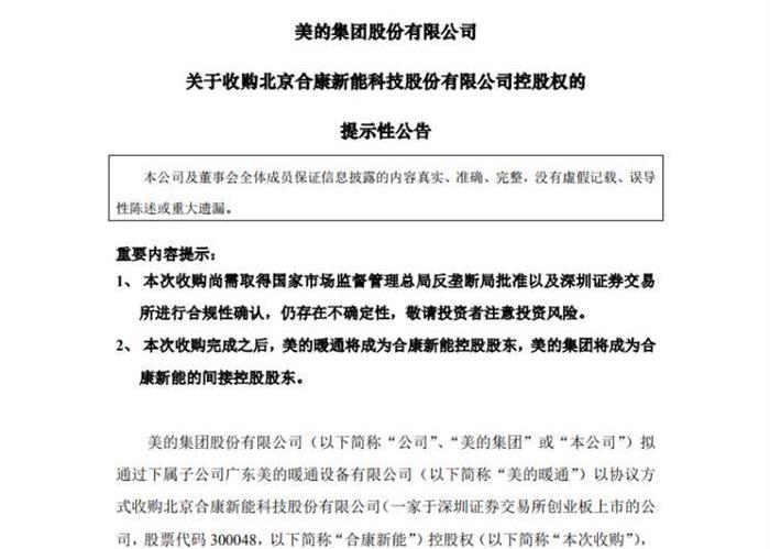 美的集团指出,和康新能在节能、环保、新能源汽车等领域的业务布局将增加美的集团业务的多样性。这也为美的集团拓展新业务和新模式提供了积极有效的探索基础。值得一提的是,美的集团早在2003年就进入了汽车行业,先后收购了云南客车厂、云南航天神州汽车有限公司有限公司和湖南三湘客车集团有限公司,一次实现了10000辆整车的制造能力。然而,2008年,由于管理不善,美的汽车制造项目被暂停。收购和康新能控股权也意味着美的集团将重返汽车行业。