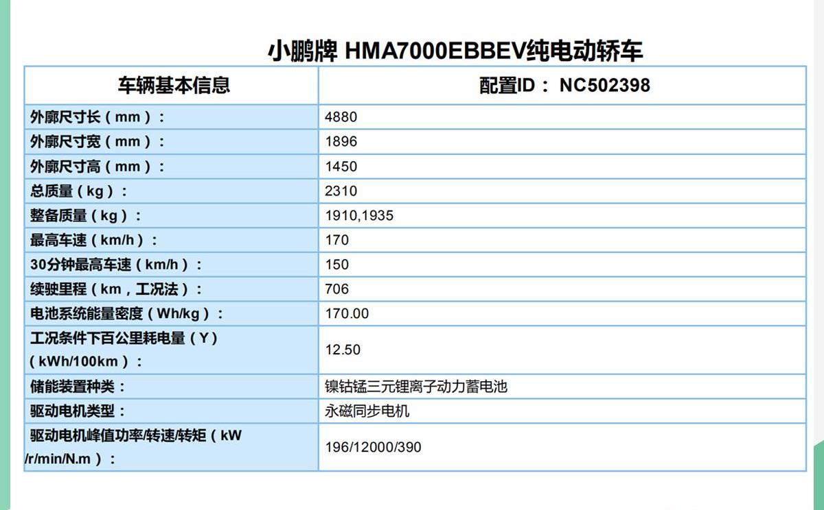 根据从国家工信部获得的最新信息,小鹏P7的两款后轮驱动超长续航车型和两款四驱高性能车型的动力电池组总能量为81kWh,总质量为490公斤;三款后轮驱动远程车型的动力电池组总能量为71kWh,动力电池组的总质量为450kg。