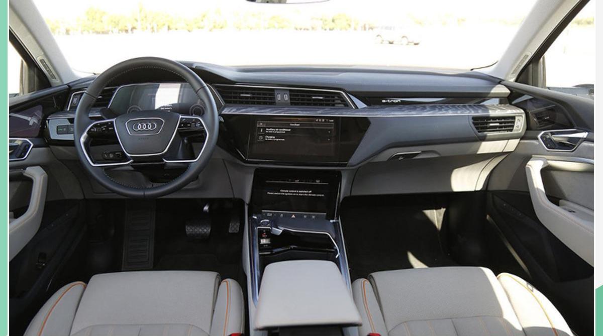 内饰方面,奥迪e-tron配备了全液晶仪表盘和最新的多媒体交互系统触摸响应操作系统,提供10.1英寸和8.6英寸两种屏幕;四辐式方向盘样式相对新颖,搭配多功能按钮,操作更加方便。动力方面,奥迪e-tron搭载了两台电机,增压模式下最大功率为300千瓦,峰值扭矩为664牛米,百公里加速5.7秒。在电池组方面,该车配备了95千瓦时的锂离子电池,NEDC续航里程为470公里。此外,奥迪e-tron标配渐进式转向系统和由电子底盘平台控制的前后五连杆悬架。