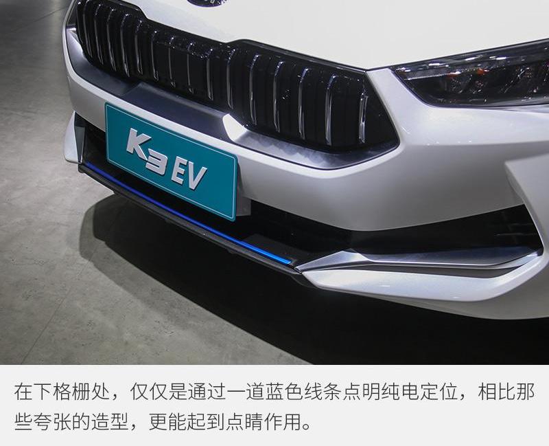 K3电动汽车的车身较低,具有强烈的运动效果。它的前脸采用了封闭式虎啸格栅、钢琴漆面板和哑光镀铬框架,增强了整体质感。这款车的尾部设计很冷,熏黑的灯组从一侧延伸到另一侧,给人一定的科技感。在细节方面,蓝色线条也被用来表达新能源的定位。