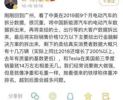两个月前,小鹏汽车董事长何小鹏在微博上公开对电动汽车在中国的真实销量表示怀疑。提取中国销售给新能源汽车的电动汽车数据,然后提取销售给出租车、出行等的主要客户数据。最后,提取12万以下的实际销售价格,主要用于出行金融解决方案。剩余的对真实消费者的销售数据仅为约10万辆,与特斯拉在美国前三季度的销售额相似。