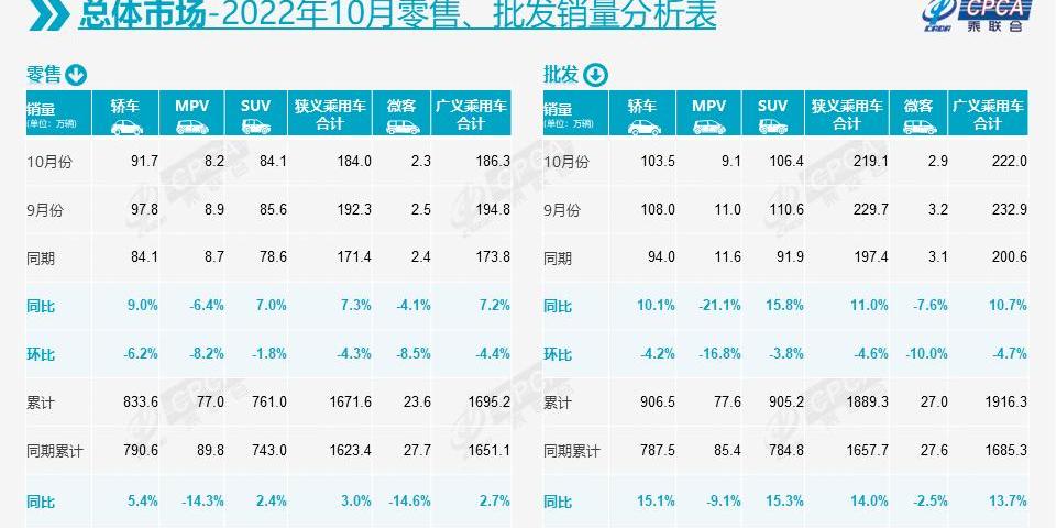 “从与汽车厂商的沟通来看,10月份环比走势与往年不同的主要原因是10月份国内市场环境发生了剧烈变化。比如部分地区经销商因疫情关闭门店,难以有效开展线下车展。这些都导致了车市相对低迷的状态。”联合会秘书长崔东树说。