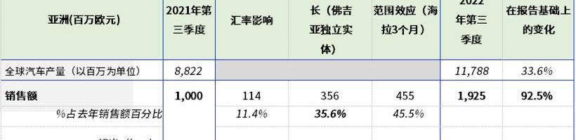 在11月3日福维亚芙蕾雅集团举办的资本市场日,我们将详细介绍这些重点以及我们的短期和长期措施,并在第二天举办可持续发展日,具体介绍我们的可持续发展路线图和具体措施。“第三季度,销售额增长了92%,主要受以下因素推动: