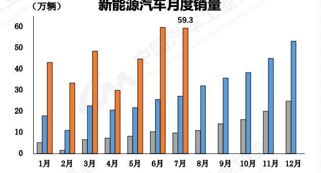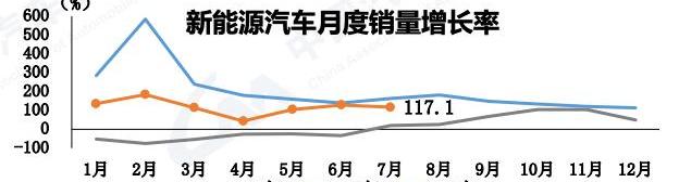 1-7月,新能源汽车产销分别完成327.9万辆和319.4万辆,同比均增长1.2倍。其中,纯电动汽车产销分别完成257.4万辆和251.8万辆,同比均实现翻番;插电式混合动力汽车产销分别完成70.2万辆和67.4万辆,同比分别增长1.9倍和1.7倍。燃料电池汽车产销分别完成2094辆和1633辆,同比分别增长2.1倍和1.3倍。