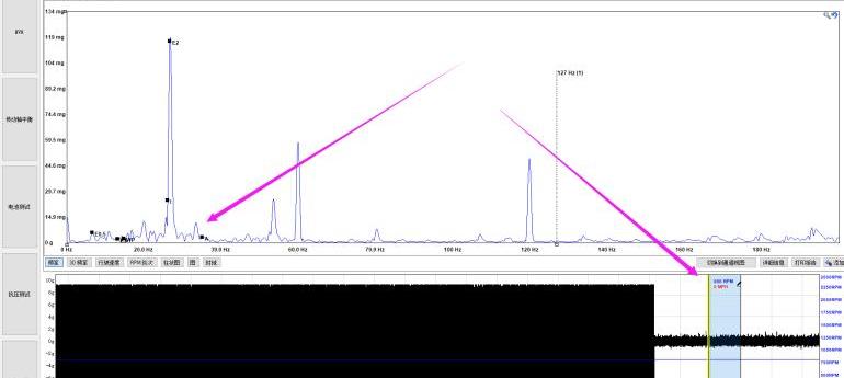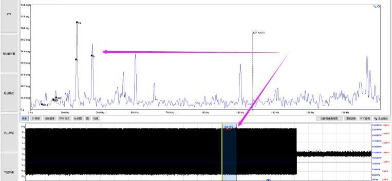 4.开始发动机检查,观察E2和A的振幅较高。去掉外带后,A的振动幅度明显减小,消除了客户投诉的噪音。所以确认噪声源是发电机,发电机轴承应该是磨损了。